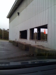 When you arrive at the “Landfill” with your white or black bag(s), you pay your $, then drive up to one of these two “windows.” You then toss your bag(s) into a window, where it comes to rest either on a pile of other bags, or on a cement floor if the bucket loader has just removed the day’s haul for parts unknown (or at least, unknown to this writer).