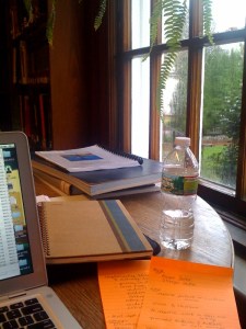 Thought you might like to see what I do here when it rains. I’m at my “special” seat in the library – notice rain drops on the window – looking out toward the Chappaquiddick Ferry.